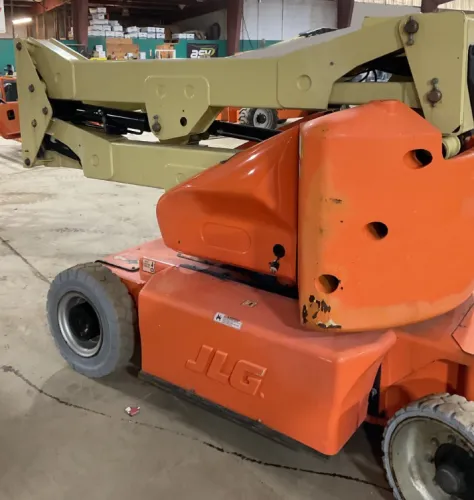Highly reliable with 1120 hours of proven operation. Environmentally friendly, thanks to the electric power source. Superior maneuverability with the jib feature. Excellent reach capabilities with a 40' platform height and 46' working height. Durable, solid non-marking tires that are gentle on surfaces. Increased work efficiency with an 80° power jib. Peace of mind with a fully serviced machine, ensuring it's in great working condition.