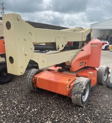Low operating hours indicate minimal wear and extended service life. Electric power offers zero emissions and quiet operation. Articulating boom with jib arm enhances reach and flexibility. Solid non-marking tires suitable for indoor applications. Compact design allows for maneuverability in tight spaces. Recent battery replacement ensures reliable performance.