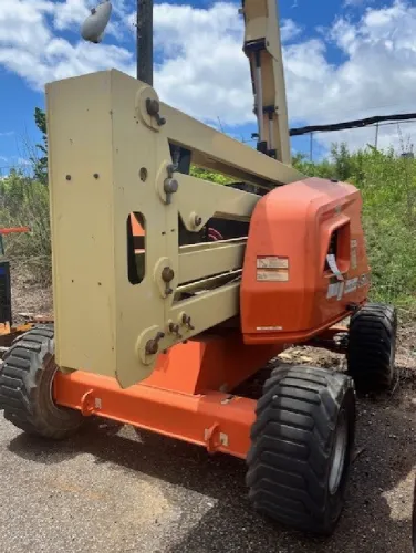 This industrial equipment comes with 1370 hours of operation, indicating it has been used but is not worn out. The Deutz diesel engine is renowned for its reliability, durability and high performance, even in the most challenging conditions. The 4WD feature enhances the machine's mobility and adaptability across different terrains. The Rough Terrain Tires filled with foam offer excellent traction and stability, ensuring the machine's optimal performance in any industrial setting. The included Jib increases the equipment’s versatility, allowing it to reach areas that might be difficult for other machines. With a platform height of 45 feet and a working height of 51 feet, this equipment offers ample height reach for various industrial tasks.