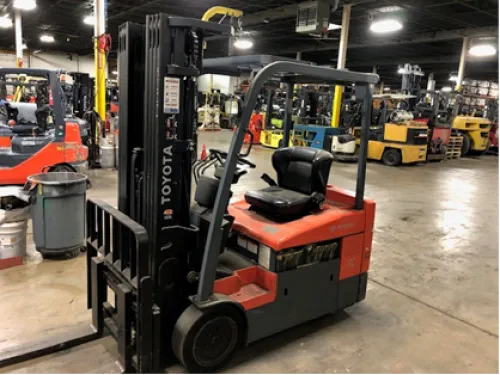 Highly reliable with 3790 hours of operation. Environment-friendly and cost-efficient electric model. Enhanced maneuverability with side shift feature. Remarkable 4000# capacity for handling heavy loads. Impressive lift height with 83" (Collapsed) Quad Mast / 240" Lift Height. Smooth and efficient control with three-way hydraulics. Uninterrupted operation with a 36 Volt Battery.