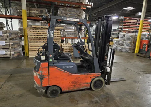 The equipment has been used for 4760 hours, demonstrating its reliability and durability in an industrial environment. Although there may be signs of use, the forklift remains in good working condition, ready to take on heavy-duty tasks. The propane engine, side shift functionality, three-way hydraulics, and high lift capacity all function properly. The 83" collapsed mast shows no signs of damage, ensuring the equipment's compatibility with different work environments. While the forklift may show signs of wear and tear, its robust design and features make it a worthy investment for any industrial operation.