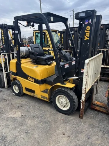 This forklift has been used for 2960 hours, a relatively low number for an industrial machine, and is in excellent working condition. All features, including the side shift, triple mast, and lifting mechanisms, are fully functional and well maintained. The propane system is in good order, providing consistent power for heavy-duty tasks. With its robust construction and efficient performance, this forklift is ready to provide reliable service for years to come.