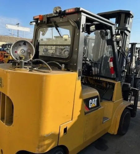 Despite the 6600 operating hours, this forklift is in excellent condition, showcasing its robust build and high-quality components. The forks, tires, and valves show minimal signs of wear, ensuring optimal performance. The propane tank is in good condition, devoid of leaks or damage. The 3-stage design components operate smoothly, and the cushion tires offer a comfortable ride without any signs of imminent replacement. The fork positioner and side shift are functioning well, enhancing the overall productivity of the equipment.