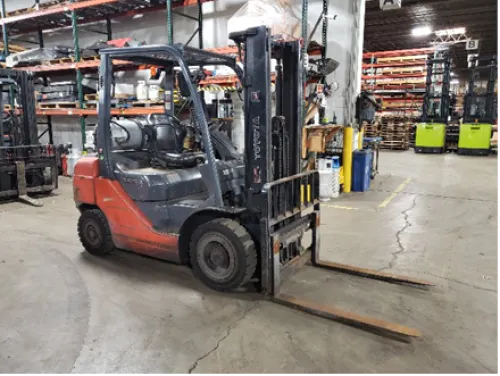 Pros: High load capacity for handling heavy-duty tasks. Propane power providing a cleaner, more eco-friendly option. Side shift capability for enhanced precision and flexibility. Impressive lift height for increased usability. Three way hydraulics for efficient load manipulation. Cons: With 5235 hours of operation, it may require regular maintenance checks. Propane, while cleaner, may not be as readily available as other fuel options.