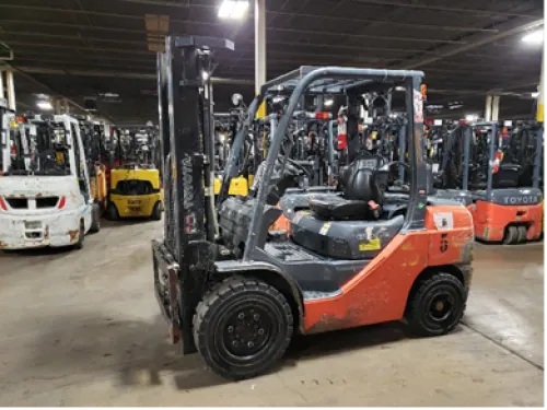 This 6000# Capacity Propane Forklift with 460 hours of operation is in excellent condition, showing minimal signs of wear and tear. The forklift's systems, including the four-way hydraulics, are functioning optimally. The side shift and fork positioner are in perfect working order, and the triple mast shows no signs of damage or instability. The propane engine runs smoothly, providing efficient and reliable performance. This forklift is ready for immediate use in any heavy-duty lifting or stacking tasks.