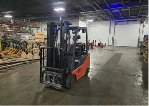 This forklift offers numerous benefits to users, making it a valuable asset in any industrial setting. These advantages include: Propane fuel provides a cleaner, more environmentally-friendly energy source compared to diesel or gasoline. The side shift feature allows for precise positioning of loads, enhancing productivity and reducing the likelihood of damage. A high capacity of 4000# means the machine can handle heavy loads with ease, making it suitable for a variety of applications. The 83" collapsed triple mast offers compact storage, while the 189" lift height provides ample reach for high shelving or stacking. Three-way hydraulics enable the operator to control lifting, tilting, and side shifting simultaneously, offering superior control and flexibility.