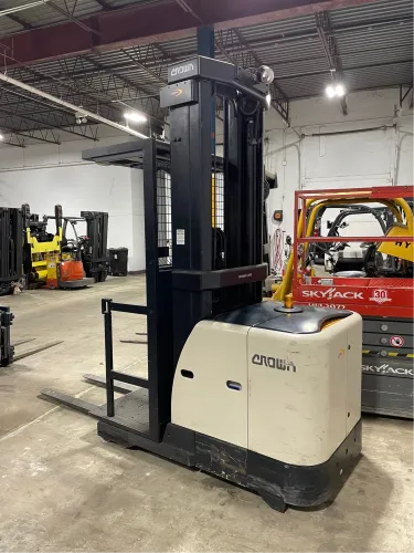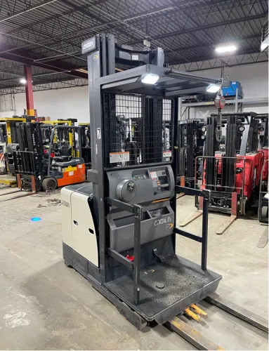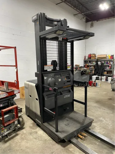 Low Hour Usage: At just 2,950 hours, the machine remains in excellent operating condition with years of service life remaining. Triple Mast Functionality: Provides better reach and flexibility for different rack and shelf heights. Electric Powertrain: Environmentally friendly and cost-effective, requiring less maintenance than internal combustion models. Large Capacity: With 3,000 lbs of capacity, this unit is capable of handling heavy-duty order-picking tasks with ease. Narrow Aisle Compatibility: Compact footprint allows for efficient use of warehouse space. Battery Operated: Supports continuous use with proper charging rotation, ideal for daily operations. Tested & Inspected: Fully evaluated by technicians to ensure readiness and performance.