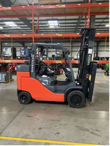 This 2730 hours propane industrial equipment is in great condition, having been thoroughly serviced and maintained to ensure top-notch performance. The machine shows signs of use consistent with its running hours, but no major wear or defects that could affect its functionality. All parts, including the four-way hydraulics and mast, are in excellent condition. The machine does not come with a clamp, but this does not impact its overall operational capacity.