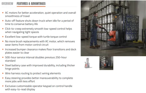 This 2500# Capacity industrial equipment boasts numerous advantages that make it a top choice for a variety of industrial applications. Here are some of the key benefits: Durability: With a robust build, this equipment can withstand tough industrial environments and deliver reliable service for years. High Capacity: With a loading capacity of 2500#, it can handle substantial weight, making it suitable for heavy-duty tasks. Exceptional Lift Height: The 104" lift height enables it to reach high areas easily, increasing operational efficiency. Efficient Power Supply: Powered by a 24 Volt Battery, this equipment ensures consistent performance throughout the workday. Low Operational Hours: With only 845 hours of operation, this equipment still has a long lifespan ahead.