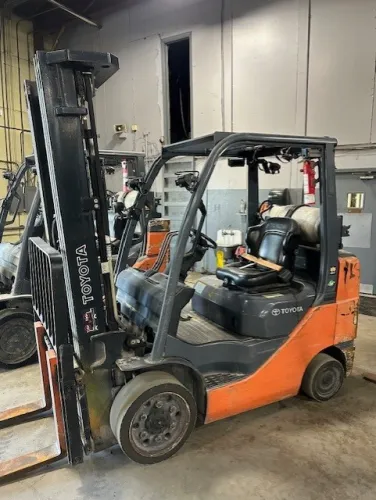The Propane Side Shift with a 6000# Capacity is in good working condition, despite its 4520 hours of operation. Regular maintenance and proper care have ensured its longevity. However, prospective buyers should be aware that, due to the machine's extensive usage, some parts may need to be replaced or serviced. The propane power system continues to deliver efficient performance, and the three-way hydraulic system operates effectively. The side shift function is fully operational, and the collapsed triple mast, although showing some signs of wear, remains robust and reliable. Overall, this Propane Side Shift with a 6000# Capacity is a solid investment for businesses looking for a versatile, reliable, and eco-friendly piece of industrial equipment.