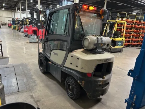 Heated Cab: Boosts operator comfort and safety during winter months. Triple Mast: Offers a compact profile when collapsed and superior reach when extended. Fork Positioner: Reduces manual adjustments and increases throughput. Side Shift Capability: Ideal for tight stacking and pallet placement. Low Hours: Less wear and tear ensures longer equipment lifespan. Reliable Propane Engine: Balances indoor-friendly emissions with strong outdoor performance.