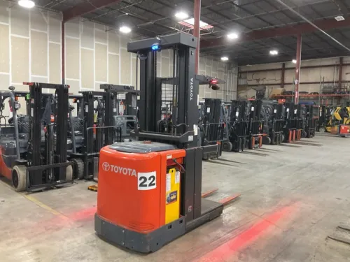 This 3000# Capacity Order Picker is in excellent working condition, having clocked 1905 hours of operation. The machine's body is in good shape, with no significant dents or scratches. All moving parts, including the 42" forks and the triple mast, function smoothly. The 24-volt battery and the battery watering system are also in great shape, ensuring the machine's reliable performance. As with all used equipment, some minor signs of use may be visible, but these do not affect the machine's performance or safety.