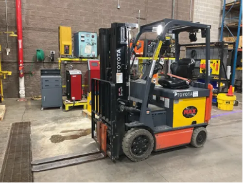 The equipment is in excellent working condition, having served for 5485 hours without significant issues. The electric motor, side shift feature, triple mast, and hydraulic system are all functioning optimally. The 48-volt battery is well-maintained, ensuring long-lasting performance. This machine is ready for immediate use and promises to be a reliable workhorse in any industrial setting.