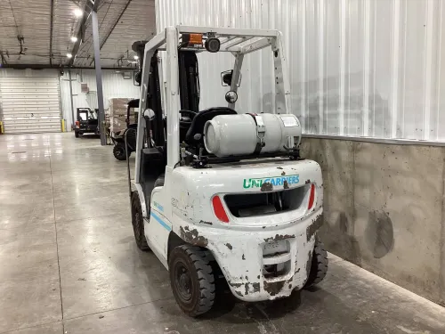 NLEQ# 147225 is a reliable and versatile propane-powered forklift with a 5,000-pound capacity, triple-stage mast, and side shift functionality. Its low operating hours and well-maintained condition make it a valuable asset for various material handling applications. The combination of ergonomic design, fuel efficiency, and precision handling ensures that this forklift can meet the demands of diverse operational environments, from warehouses to construction sites.