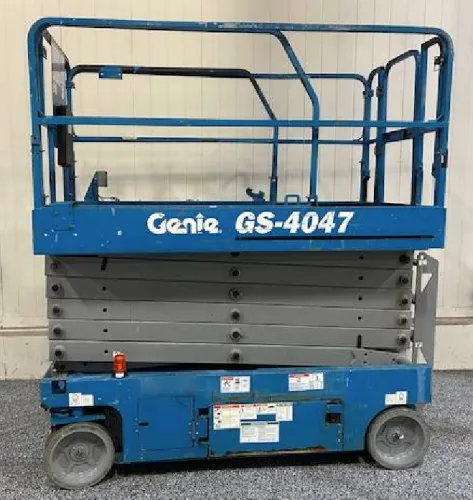 This electric scissor lift is in remarkable condition, exhibiting robustness and durability. The single manual extension deck is fully operational and extends smoothly. The solid non-marking tires are in excellent condition, showing no signs of wear or damage. The lift mechanism is functioning perfectly, allowing for a 40' platform height and a 46' working height. All in all, this lift promises to be a reliable and valuable addition to your industrial equipment.
