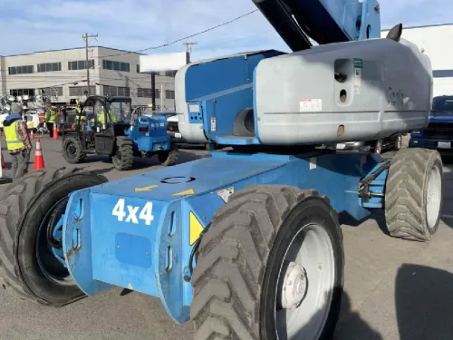 Impressive power and fuel efficiency with the Deutz Turbo Diesel engine. Excellent maneuverability on all kinds of terrain, thanks to 4WD functionality. Ample working space provided by the 8' platform. Superior durability and stability with rough terrain tires. High reach capabilities with a 125' platform height and 131' working height. Enhanced lift and reach with the jib feature.