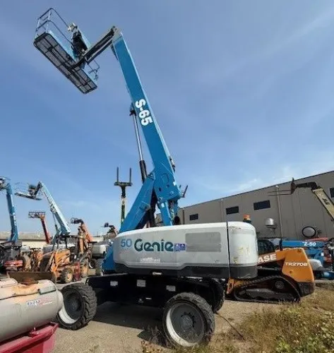 High Vertical Reach: 65 ft. platform height allows for work on multi-story buildings, bridges, and communication towers. Terrain-Ready Design: Foam-filled tires and 4WD provide reliability in mud, gravel, and uneven job sites. Flexible Outreach: Jib boom delivers the versatility to navigate tight spots and angled structures. Heavy-Duty Build: Made to endure rigorous use in industrial and construction environments. Strong Performance: Diesel engine handles long jobs with consistent output and lower refueling frequency. Proven Usage Record: 3100 hours reflect maintained usage in real job site conditions with potential for extended service life.