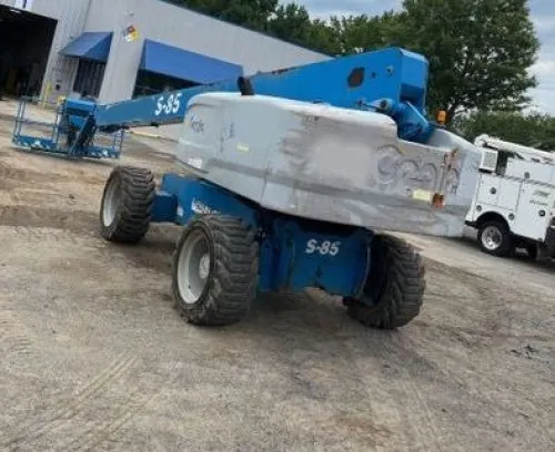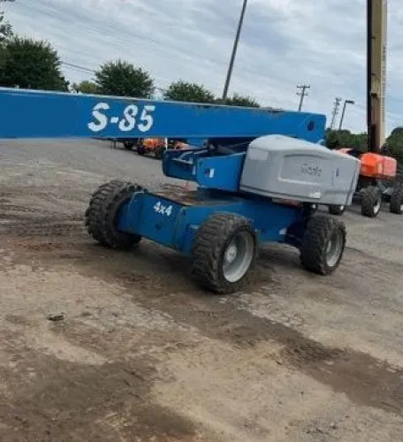 Flexible fueling options with the dual fuel system. Excellent stability and maneuverability with 4WD and oscillating axles. Increased workspace with the 8' platform. High durability and traction with rough terrain tires. Precision and efficiency are enhanced by the jib feature. High reach capabilities with a platform height of 85 feet, suitable for a variety of tasks.