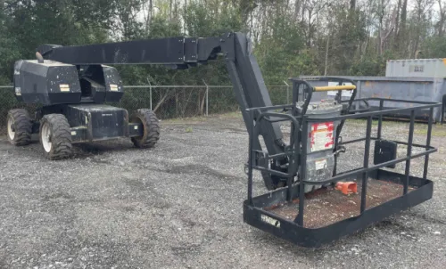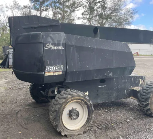 This industrial equipment is in good condition. The 3895 hours of operational time indicate its resilience and reliability. It has been well-maintained, with the Deutz Diesel engine and 4WD drive system working optimally. The foam-filled rough terrain tires are in good shape, showing minor signs of wear but no significant damage. The jib is functioning perfectly, adding to the overall operational efficiency of the equipment. The platform and working heights are as indicated - 66' and 72' respectively, which provide ample height for various industrial tasks.