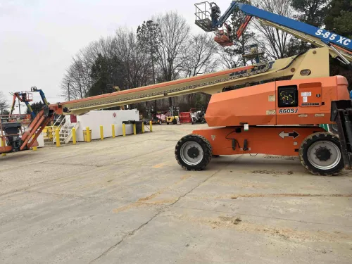 This equipment offers a plethora of benefits for users, including: High Reach: With a platform height of 86 feet, this equipment provides high reach capabilities for various tasks. Dual Fuel: The dual fuel option offers the flexibility to switch between gas and electric power, ensuring optimal performance. All-Terrain Performance: The 4WD and rough terrain tires provide excellent traction, making it ideal for use in off-road environments. Increased Stability: The oscillating axles offer enhanced stability and support, improving the safety and efficiency of operations. Foam-filled Tires: These provide better puncture resistance, reducing downtime and maintenance costs. SkyPower: This feature allows the use of power tools at the platform, increasing productivity. Jib: The inclusion of a jib offers increased versatility and range of motion in work applications.