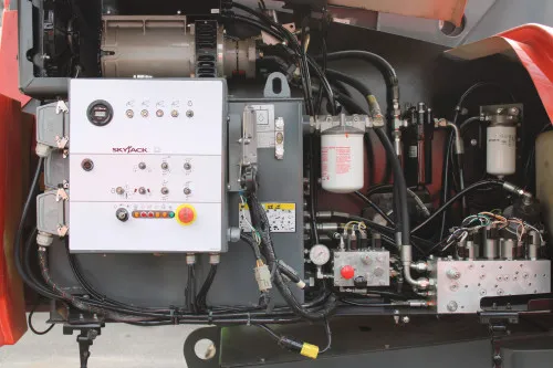 This Deutz Diesel 4WD machine has clocked 3284 hours of operation, indicating a history of robust and reliable service. The foam-filled rough terrain tires are in good condition, ensuring smooth operation on challenging terrains. The 8' platform, jib, and generator show no significant signs of wear, suggesting that they're ready for many more hours of operation. Despite its hours of use, this machine is in good condition and ready to provide reliable service in various industrial applications.