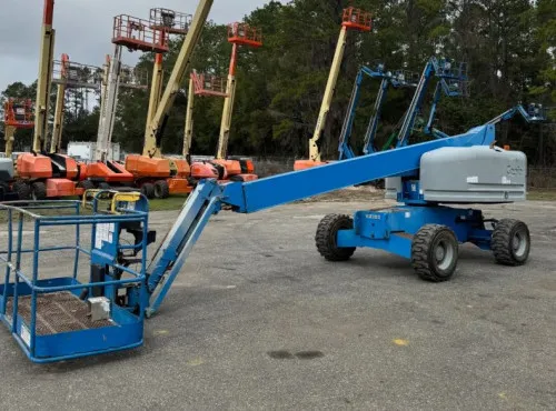 Highly durable and reliable, boasting 2170 hours of operation. Exceptional performance and fuel efficiency with Deutz diesel engine. Comfortable and spacious 8' platform for operators. Superior stability and puncture resistance with foam-filled tires. Smooth navigation on uneven surfaces with oscillating axles. Impressive off-road capabilities with rough terrain tires. Enhanced reach and versatility with the jib. Extra power and capacity with the 45.