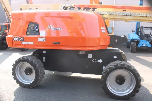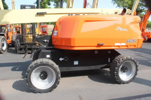 This industrial equipment comes with multiple notable benefits that make it an outstanding choice for a wide range of operations. Powerful Performance: The Deutz Turbo Diesel engine delivers robust power and enduring performance. Impressive Reach: With a 60-foot platform height and 66-foot working height, this machine offers excellent reach. Superior Mobility: The 4WD and foam-filled rough terrain tires provide enhanced mobility on challenging terrain. Reliability: With 2570 hours of proven performance, this machine is reliable and ready for work. Added Features: The SkyPower and jib enhance the functionality and versatility of this machine. Peace of Mind: The machine is fully serviced and comes with a fresh annual inspection and a 30-day warranty.