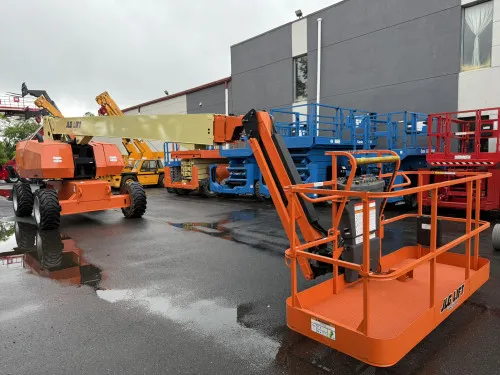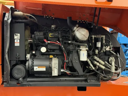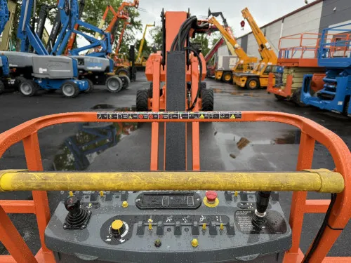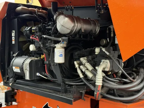 Reliable Performance: With 2185 operating hours, this equipment has proven its reliability in industrial operations. Powerful Engine: The Deutz diesel engine offers robust performance and durability. Superior Mobility: The 4WD drivetrain ensures excellent maneuverability across various terrains. Spacious Workspace: The 8' side entry platform provides ample workspace and easy access. Excellent Stability: Foam-filled and rough terrain tires offer enhanced grip and stability. Flexible Operation: Oscillating axles ensure smooth and flexible operation. Optimal Power Management: SkyPower technology allows for efficient power management. Enhanced Reach: The inclusion of a jib and an adjustable platform height of 86'-92' ensures a broad work range.