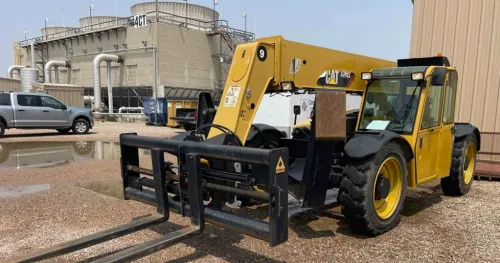 The equipment is in good working condition, with the CAT Turbo Diesel engine clocking 2965 hours of operation. It's well-maintained and ready for immediate deployment. The heated and air-conditioned cab ensures a comfortable working environment, and the outriggers are in excellent condition, offering increased stability. With its 9000# lifting capacity and 43' lift height, the equipment is ready to handle demanding industrial tasks.