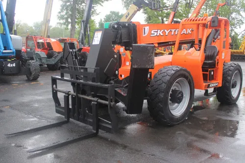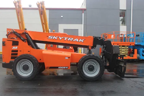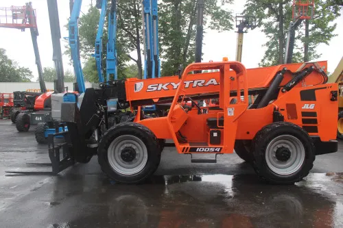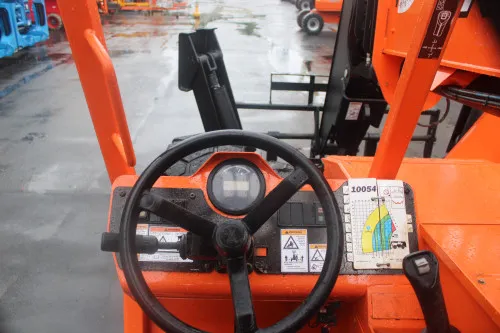 Reliable and efficient Cummins Turbo Diesel engine. Large carriage and pallet forks for heavy-duty tasks. Foam-filled tires that can withstand challenging terrains. Auxiliary hydraulics for easy operation and maintenance. Outriggers that enhance stability during operation. Impressive 10000# capacity and 54' lift height. Comprehensive work orders on file and a 30-day warranty.