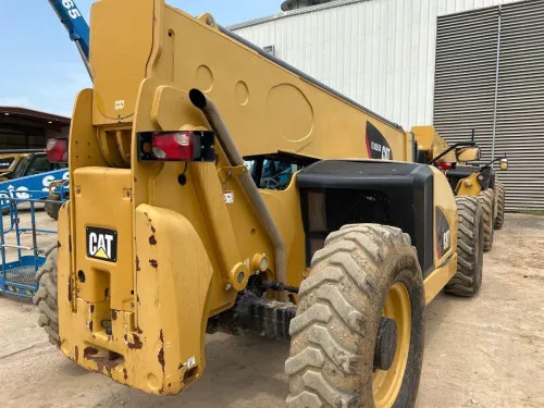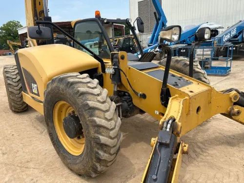 High capacity of 10000# allows for efficient handling of heavy loads. The impressive lift height of 55' facilitates tasks at high elevations. Heated and air-conditioned cab enhances operator comfort and productivity. Outriggers provide extra stability, ensuring safe operation. Hydraulic quick coupler enables quick and easy attachment changes, increasing versatility. Powered by a durable and efficient Cat Diesel engine.