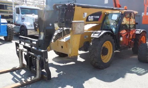 Pros Highly reliable with 6870 hours of usage. Superior performance with Cat Turbo Diesel engine. Operator comfort ensured with a heated and air-conditioned cab. Increased versatility with auxiliary hydraulics. Enhanced safety and stability with outriggers. Large capacity of 12000# for heavy-duty tasks. Impressive lift height of 55' for varied applications. Cons Potential maintenance requirements due to 6870 hours of usage. Requires skilled operator for optimal usage and safety. May require additional space for storage due to its large size.