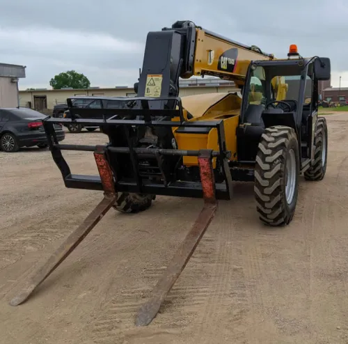 Pros Durable: With its Cat Turbo Diesel engine and 2870 hours of operation, this machine is built to last. High Capacity: The 9000# lift capacity allows for handling of heavy loads, improving efficiency and productivity. Flexible Operation: The side tilting carriage and high lift height make it easy to maneuver and operate in various conditions. Easy Maintenance: The manual quick coupler allows for easy attachment changes, reducing downtime and maintenance costs. Cons Manual Coupler: While the manual quick coupler offers easy attachment changes, it may require more effort and time compared to hydraulic variants. Size: The large size of the equipment might make it difficult to operate in tight spaces.