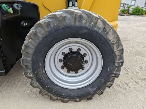 The Cat Turbo Diesel forklift is in excellent condition with only 2870 hours of operation, indicating it has been well maintained and has a lot of life left. The foam-filled tires are also in good condition, offering stability and puncture resistance. The 60" pallet forks and 72" side tilting carriage are in good working order, ensuring efficient load handling. Despite its size, the machine shows minimal signs of wear and tear, making it a reliable choice for heavy lifting tasks.